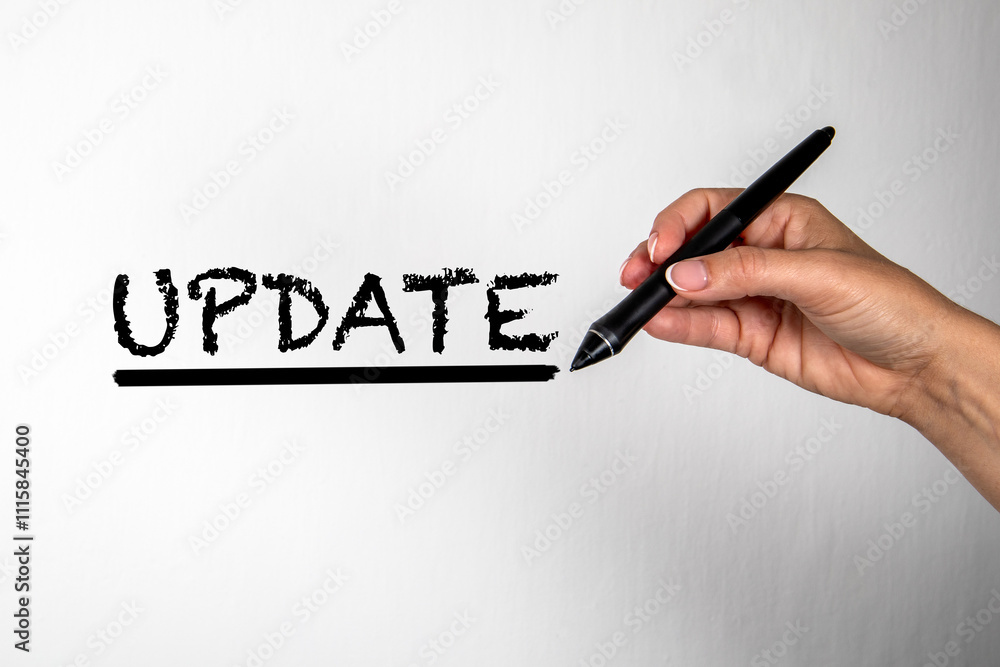 Wall mural : Update concept - a hand with a marker writes text on a light background