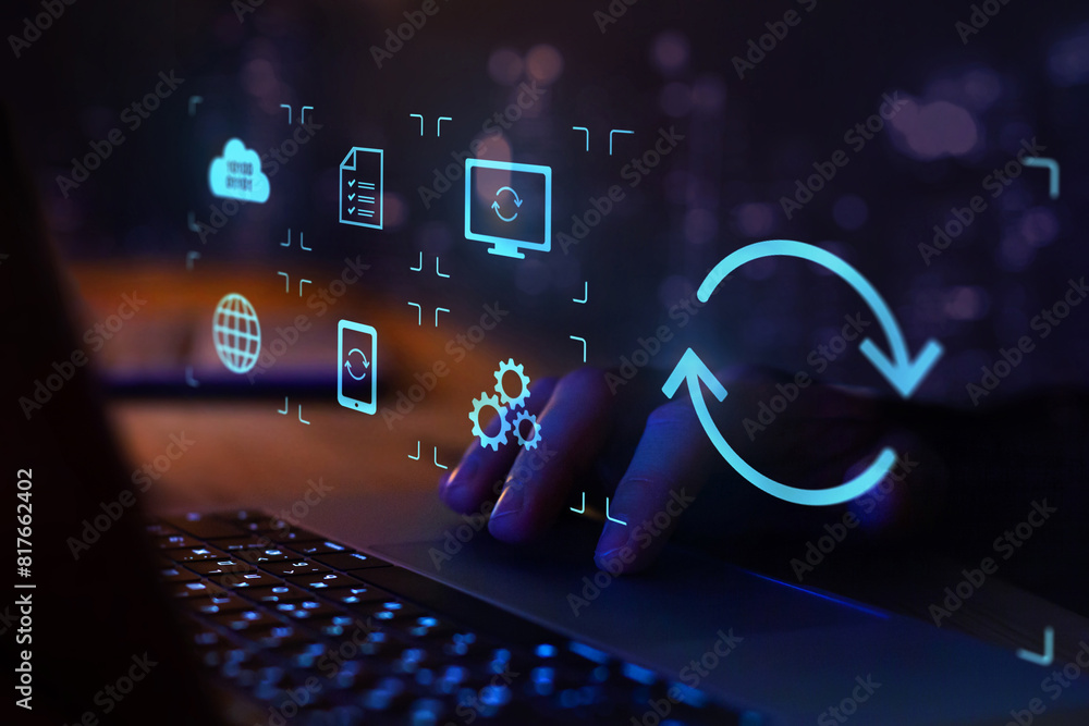 Wall mural update or synchronization concept, software upgrade icon on virtual screen - Wall murals Wall mural update or synchronization concept, software upgrade icon on virtual screen - Wall murals