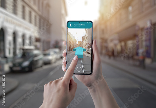 Use 3d navigation to find museum on mobile phone - the concept of augmented reality technologyWall mural