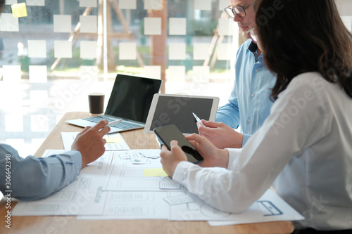 Wall mural user experience ux designer designing web on smart phone layout. ui developer planning working on mo - Wall murals Wall mural user experience ux designer designing web on smart phone layout. ui developer planning working on mo - Wall murals
