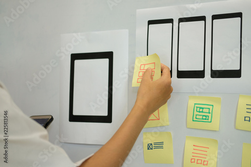 Wall mural : User experience ux designer designing web on smartphone layout - ui planning mobile application - deve