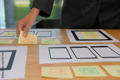 Wall mural : User experience ux designer designing web on smartphone tablet layout - ui planning mobile applicatio