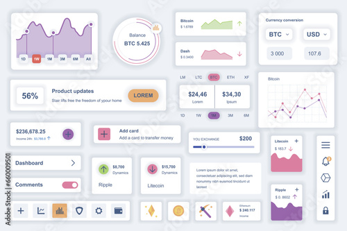 The watermark will not be included on Wall mural.: User interface elements set for cryptocurrency mobile app - kit template with hud diagrams, profit in
