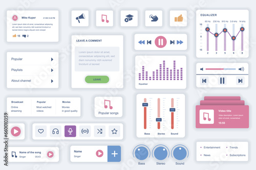 The watermark will not be included on Wall mural.: User interface elements set for music mobile app - kit template with hud diagrams, player button, pla