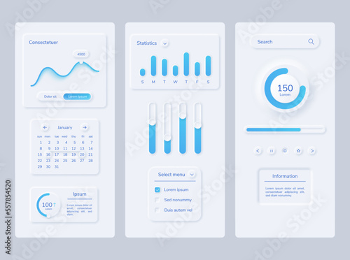 Wall mural user interface kit neumorphism chart anf graphic. vector illustration of app interface ui, mobile te