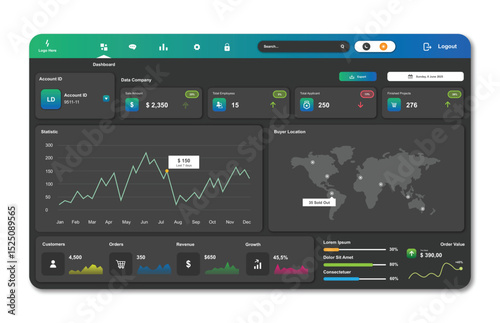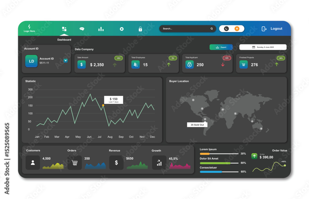 The watermark will not be included on Wall mural.: User panel business dashboard - web design - modern dashboard ui design