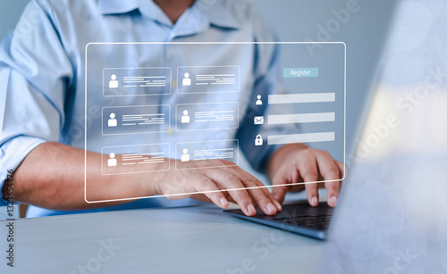 Wall mural : Users fill out online survey information with online registration form, register new users, fill out