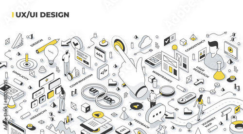 Wall mural : Ux, ui design isometric illustration - building user experience roadmap, planning user interaction wi