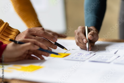 Wall mural : Ux, ui designers collaborate to design user interfaces for smartphone apps based on user experience -