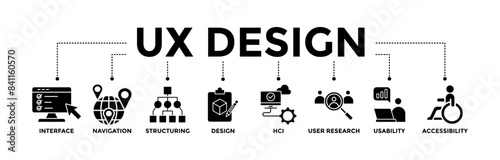 Wall mural ux design banner icons set for user experience design with glyph style icon of interface, navigation - Wall murals Wall mural ux design banner icons set for user experience design with glyph style icon of interface, navigation - Wall murals
