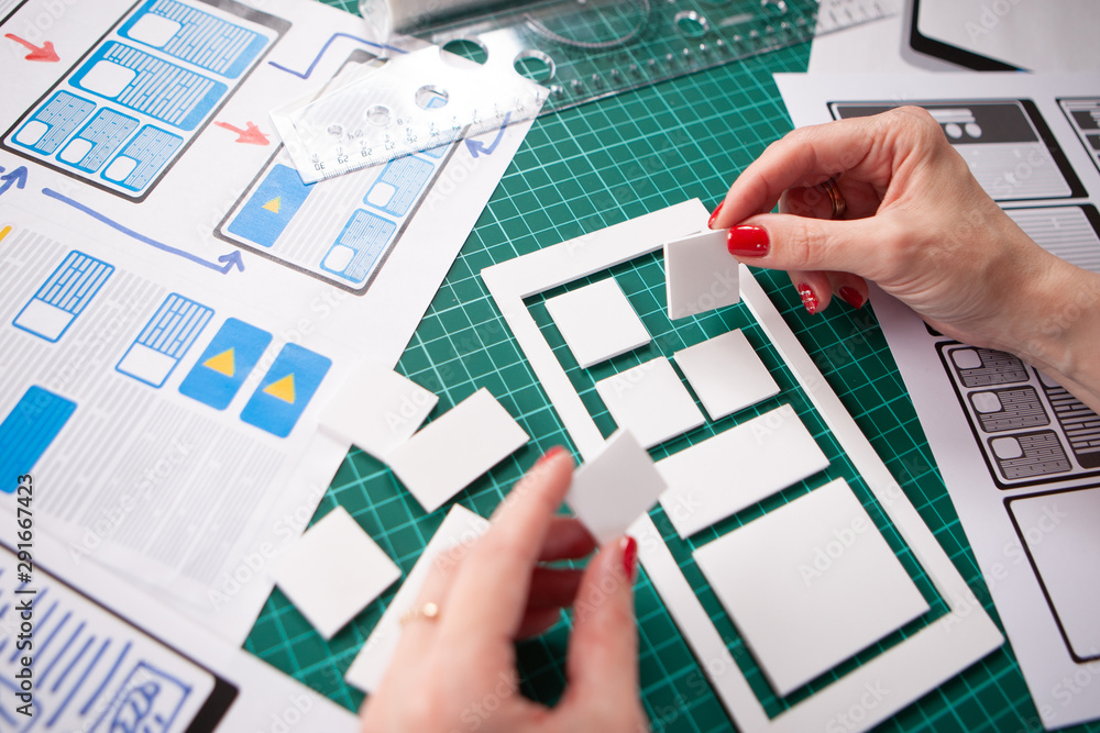 Wall mural ux design. application prototype. phone application designer. the girl thinks what the mobile applic - Wall murals Wall mural ux design. application prototype. phone application designer. the girl thinks what the mobile applic - Wall murals
