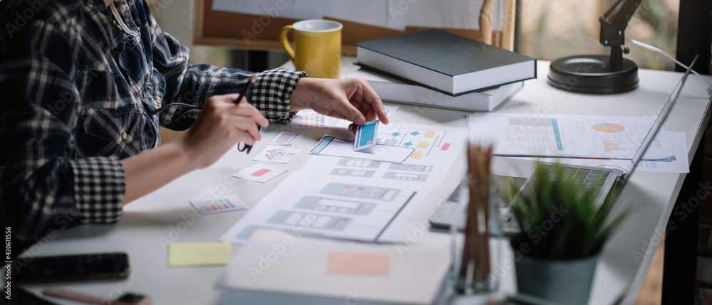 Wall mural ux designer creative graphic planning application development for web mobile phone or computer. user