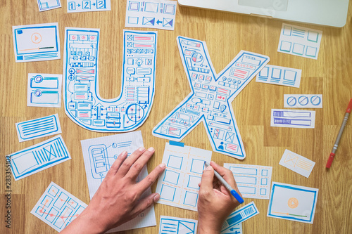 Wall mural : Ux designer creative prototype graphic planning application development for web mobile phone - user