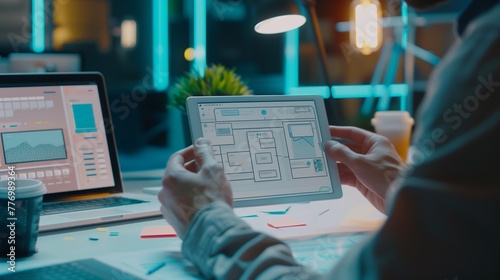 Wall mural : Ux developer and ui designer collaborating on a website project, focusing on creating an effective a