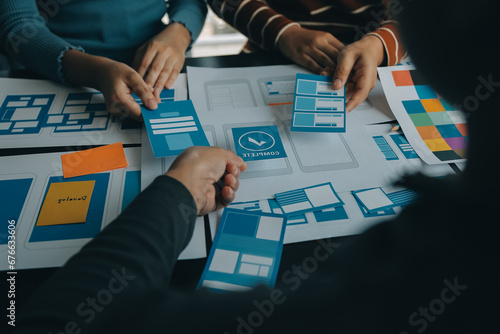 Wall mural : Ux graphic designer creative sketch planning application process development prototype wireframe for