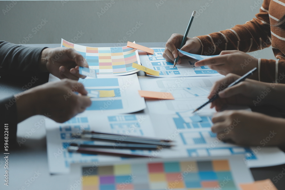 Wall mural : Ux graphic designer creative sketch planning application process development prototype wireframe for