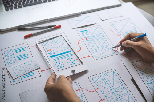 Wall mural : Ux graphic designer creative sketch planning application process development prototype wireframe for