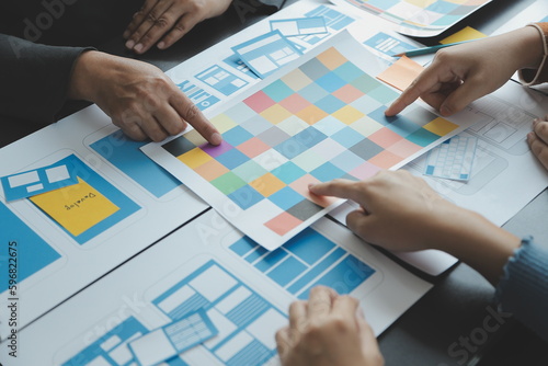 Wall mural : Ux graphic designer creative sketch planning application process development prototype wireframe for