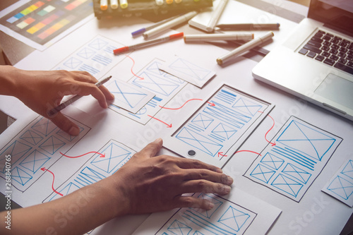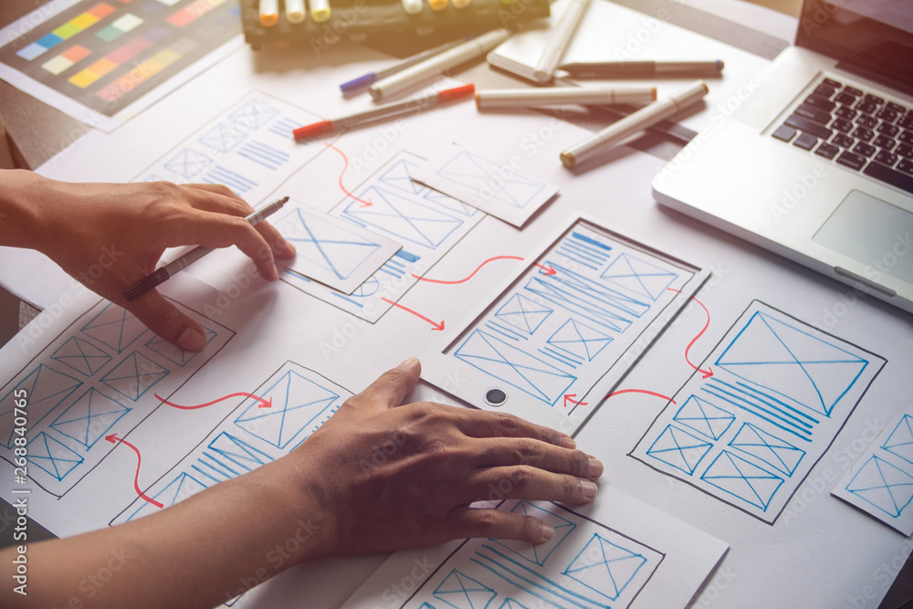 Wall mural : Ux graphic designer creative sketch planning application process development prototype wireframe for