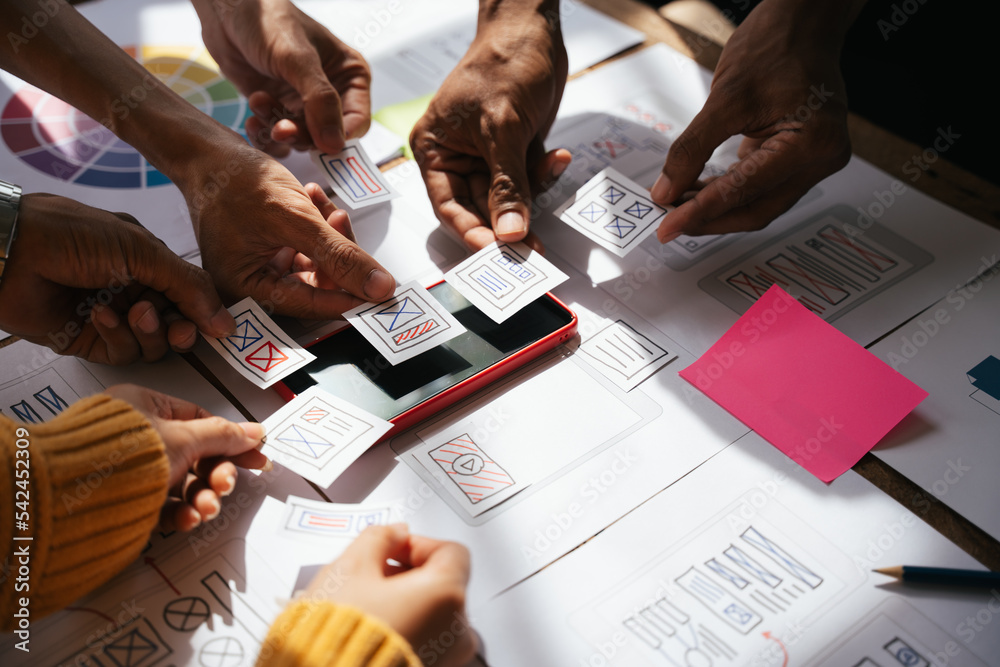 Wall mural : Ux graphic designer creative sketch planning application process development prototype wireframe for