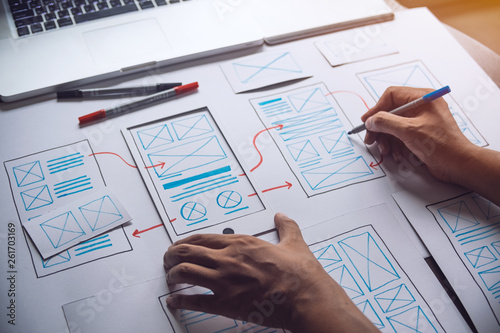 Wall mural : Ux graphic designer creative sketch planning application process development prototype wireframe for