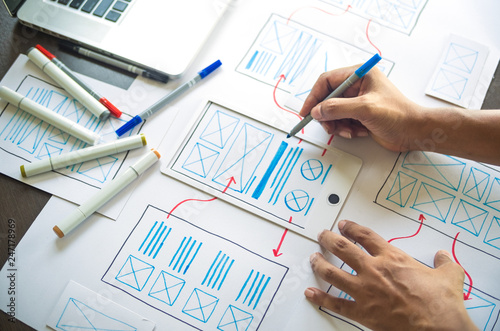 Wall mural : Ux graphic designer creative sketch planning application process development prototype wireframe for