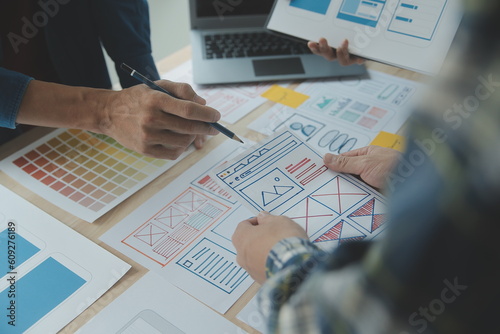 Wall mural : Ux graphic designer creative sketch planning application process development prototype wireframe for