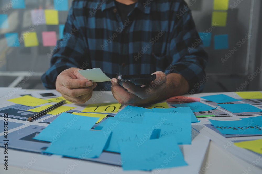 Wall mural : Ux graphic designer creative sketch planning application process development prototype wireframe for