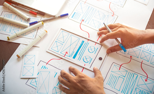Wall mural : Ux graphic designer creative sketch planning application process development prototype wireframe for