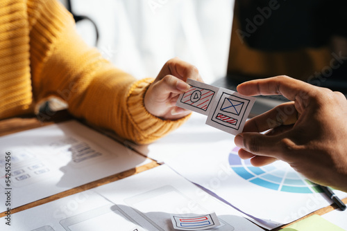 Wall mural : Ux graphic designer creative sketch planning application process development prototype wireframe for