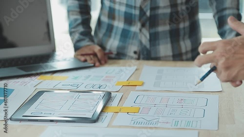 Wall mural : Ux graphic designer creative sketch planning application process development prototype wireframe for