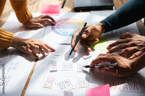 Wall mural : Ux graphic designer creative sketch planning application process development prototype wireframe for
