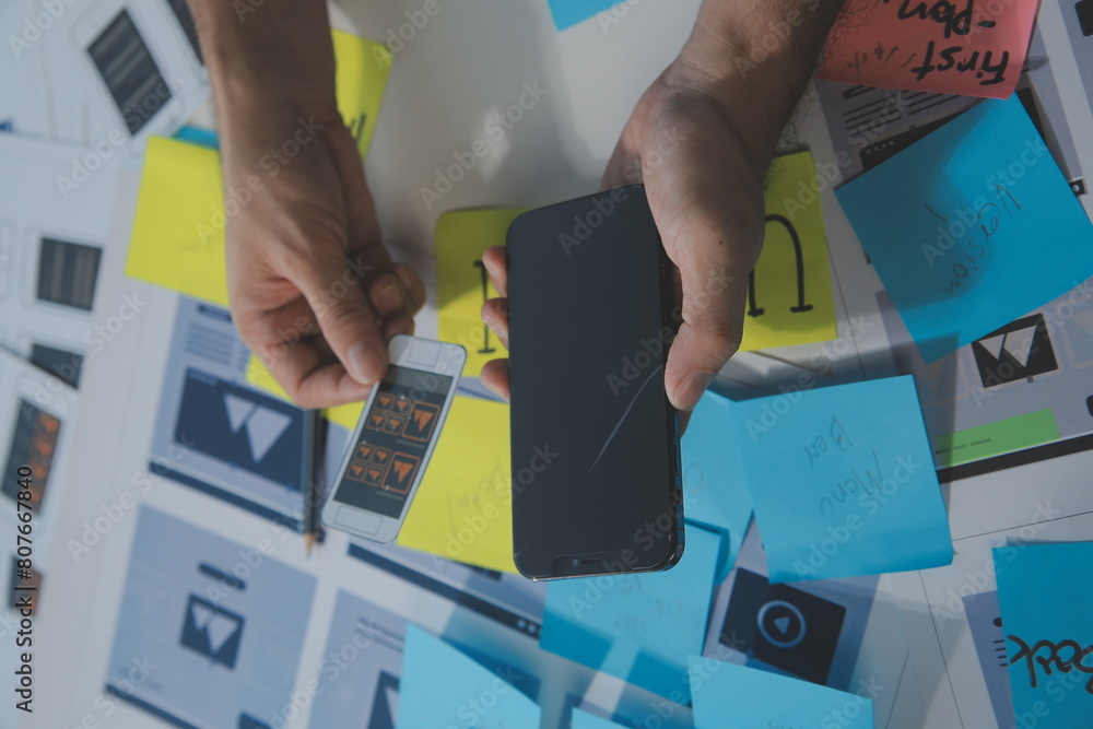 Wall mural : Ux graphic designer creative sketch planning application process development prototype wireframe for