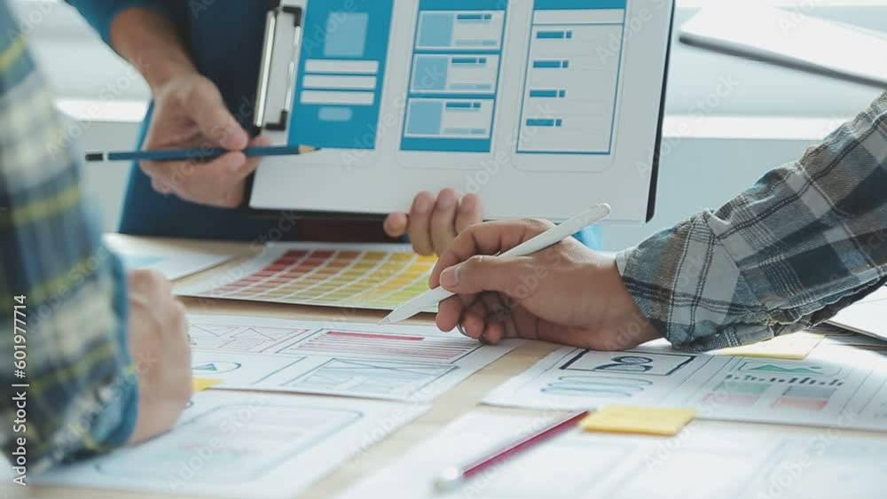 Wall mural : Ux graphic designer creative sketch planning application process development prototype wireframe for