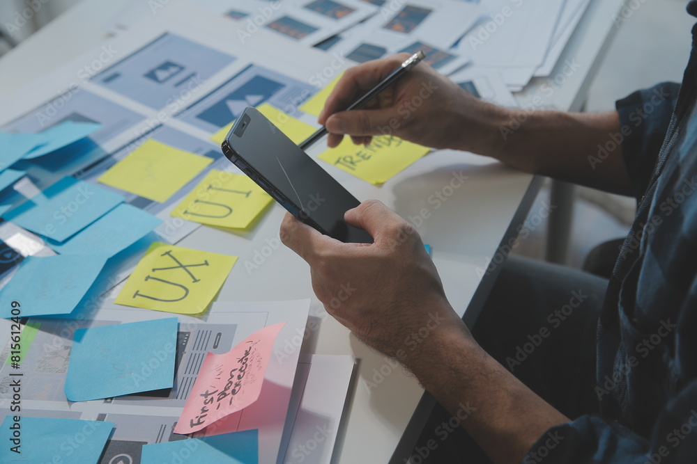 Wall mural : Ux graphic designer creative sketch planning application process development prototype wireframe for