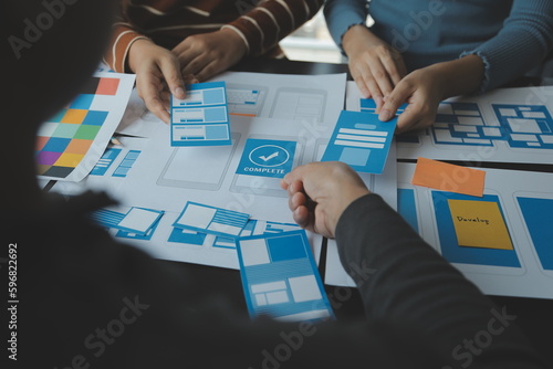 Wall mural : Ux graphic designer creative sketch planning application process development prototype wireframe for