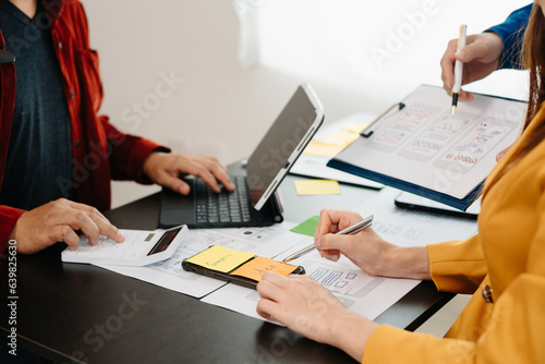 Wall mural : Ux graphic designer planning application process development prototype wireframe for web smart phone