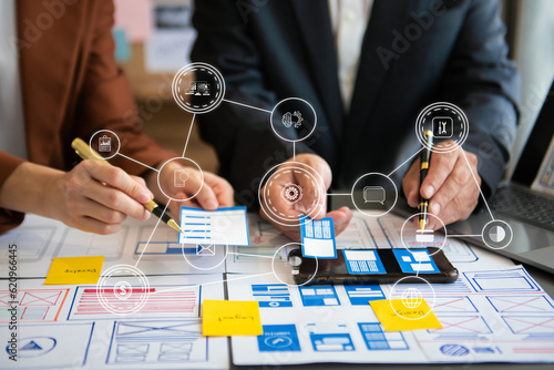 Wall mural : Ux graphic designer planning application process development prototype wireframe for web smart phone