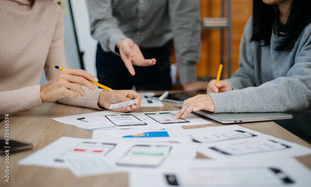 Wall mural : Ux graphic designer planning application process development prototype wireframe for web smart phone