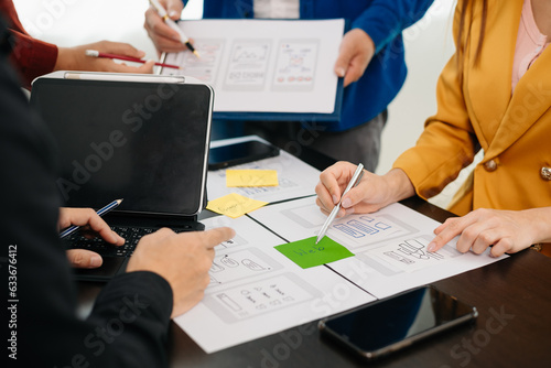 Wall mural : Ux graphic designer planning application process development prototype wireframe for web smart phone