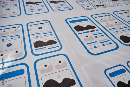 Wall mural ux mobile application wireframe. sketch, prototype, framework, layout future app design project. ui/
