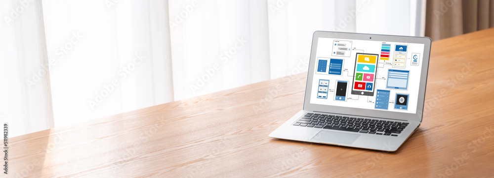 Ux ui design process for modish mobile application and website - creative prototype of wireframe forWall mural