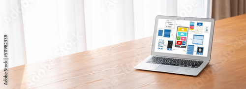 Wall mural ux ui design process for modish mobile application and website . creative prototype of wireframe for