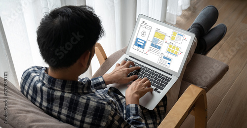 Ux ui design process for modish mobile application and website - creative prototype of wireframe forWall mural