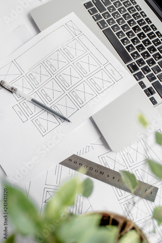 Wall mural : Ux website designer drawing wireframe sketch of prototype, framework, layout future project - creativ
