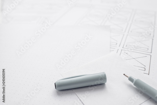 Wall mural ux website designer drawing wireframe sketch of prototype, framework, layout future project. creativ - Wall murals Wall mural ux website designer drawing wireframe sketch of prototype, framework, layout future project. creativ - Wall murals