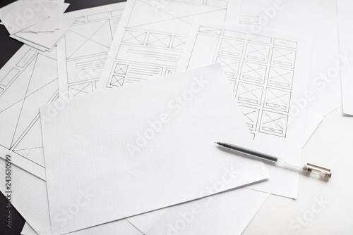 Wall mural : Ux website designer drawing wireframe sketch of prototype, framework, layout future project - creativ