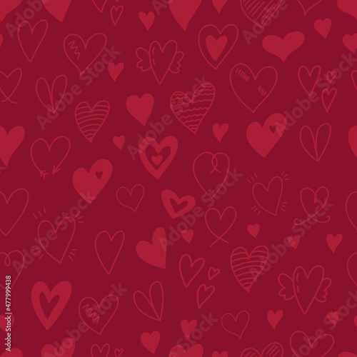 Wall mural valentines day seamless pattern background with hand drawn doodle hearts sketch. various different h