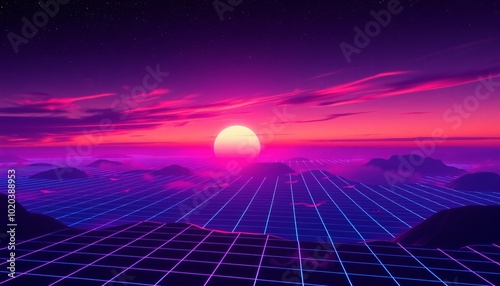 Wall mural vaporwave grids retro style landscape with grid background - Wall murals Wall mural vaporwave grids retro style landscape with grid background - Wall murals