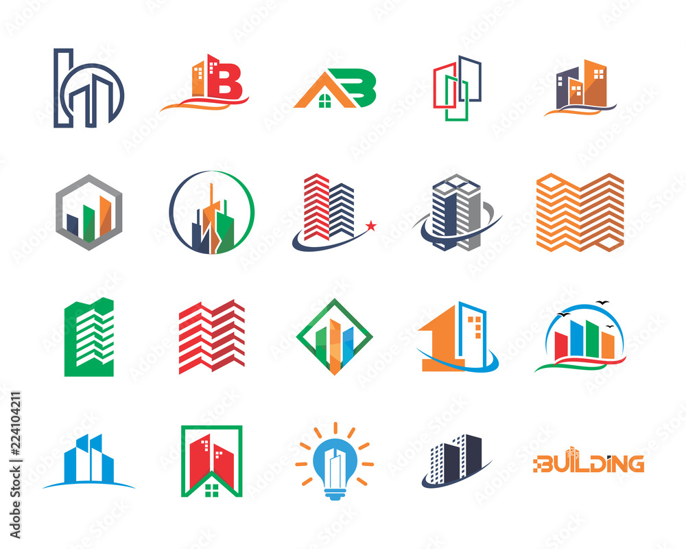 Wall mural variation mixed skyscraper building image vector icon logo symbol set